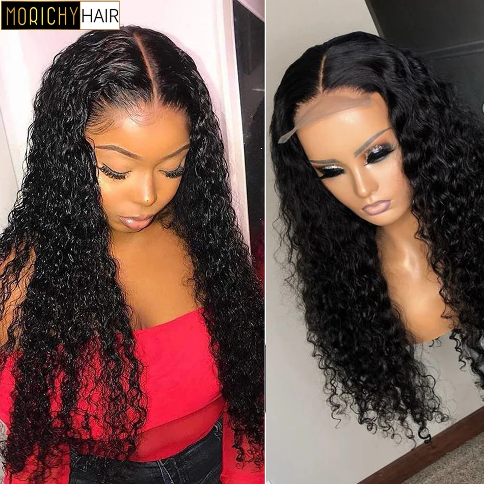 Morichy Curly 4x4 Lace Closure Human Hair Wigs Brazilian Non-Remy 150% density Pre Plucked Hairline T part Lace Front Wigs