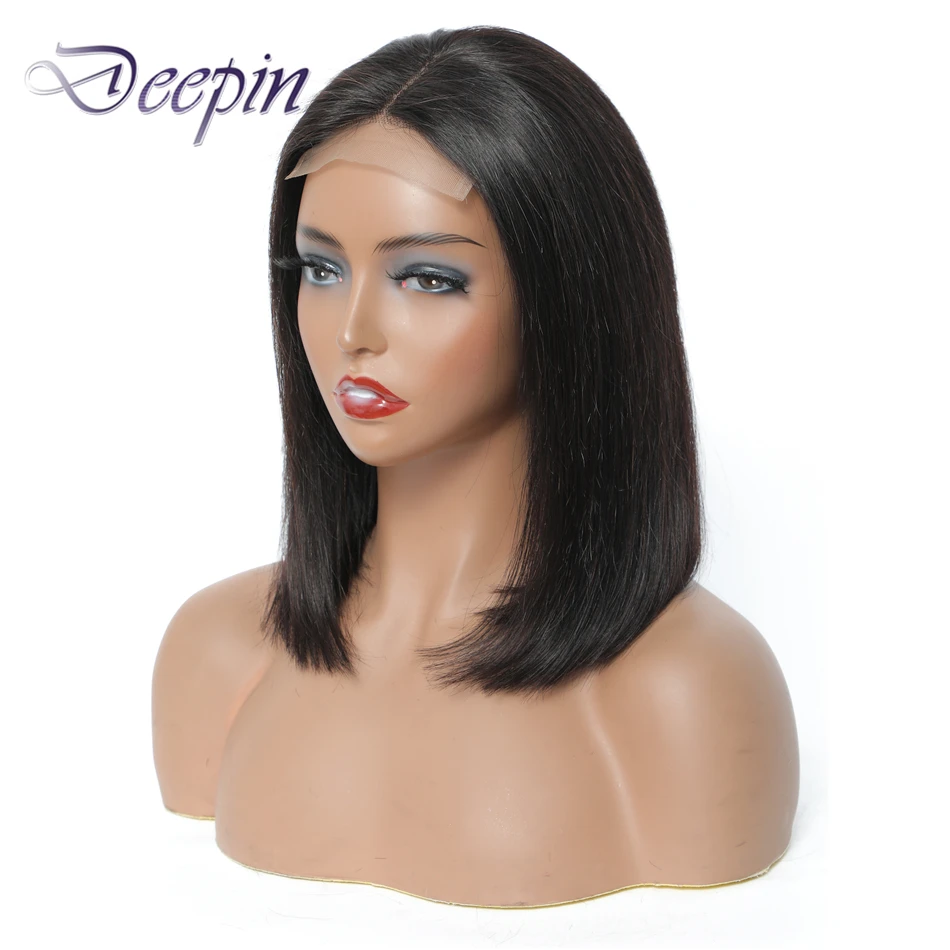 Deepin Hair Straight Human Hair Wigs 4*4 Lace Closure Wig Short Bob Hair Wigs Natural Color Peruvian Non-Remy Human Hair Wigs